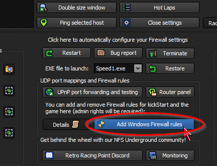 3. Or open the NFS.onl launcher and go to Open options → Main config → UPnP Port Forwarding and Testing.